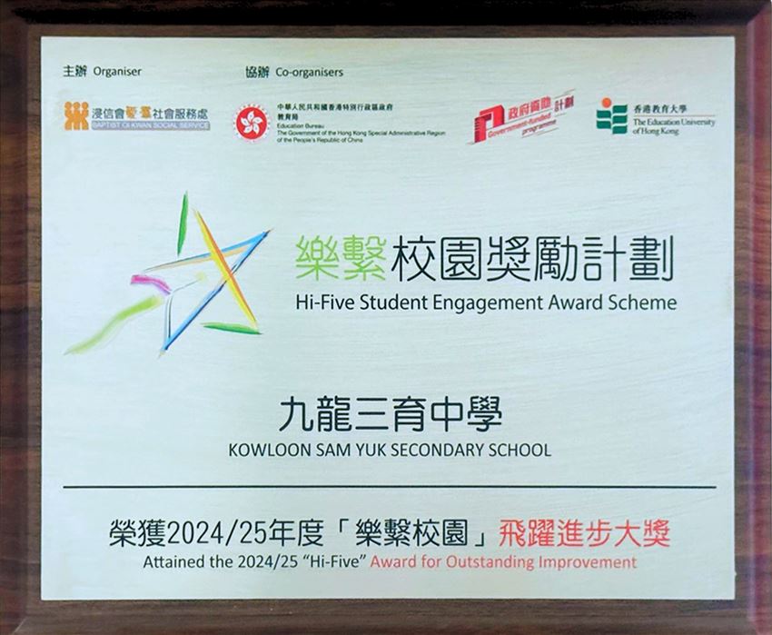 本校榮獲2024/25年度樂繫校園獎勵計劃「飛躍進步大獎」
