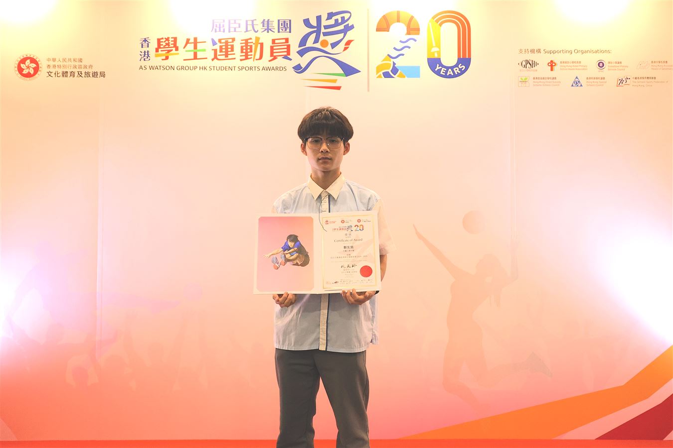 獲得屈臣氏運動員獎,運動健兒是5A鄭友銘同學