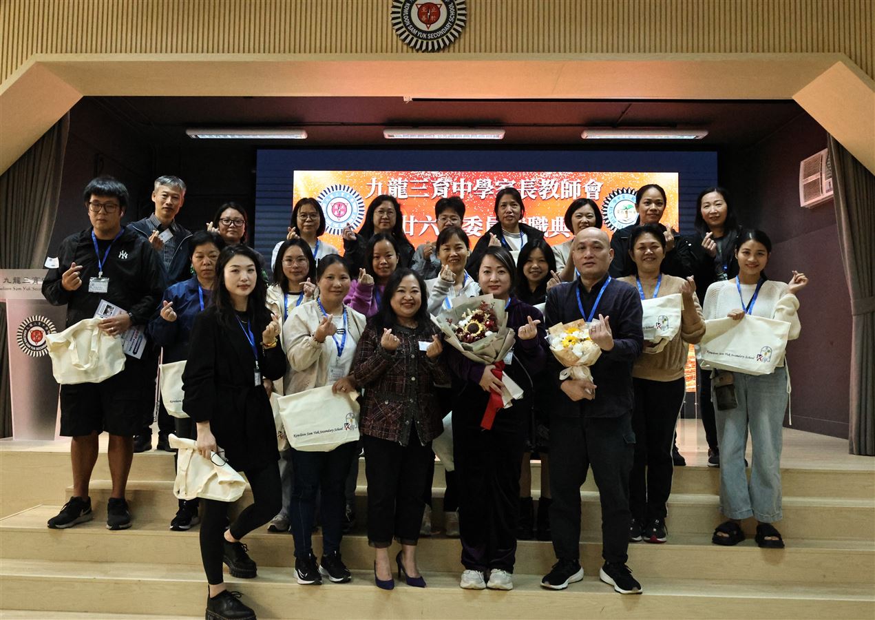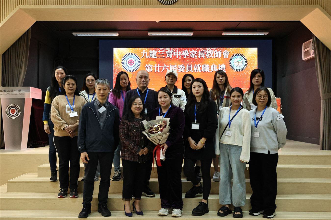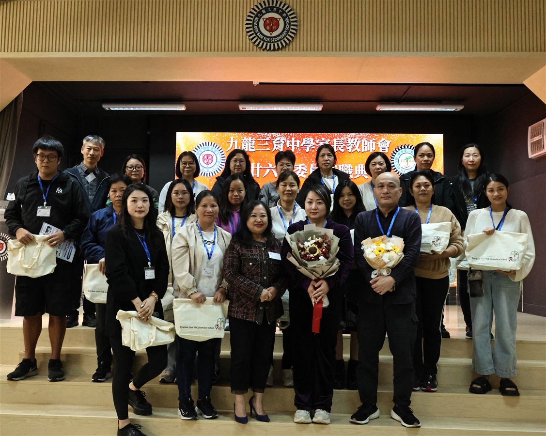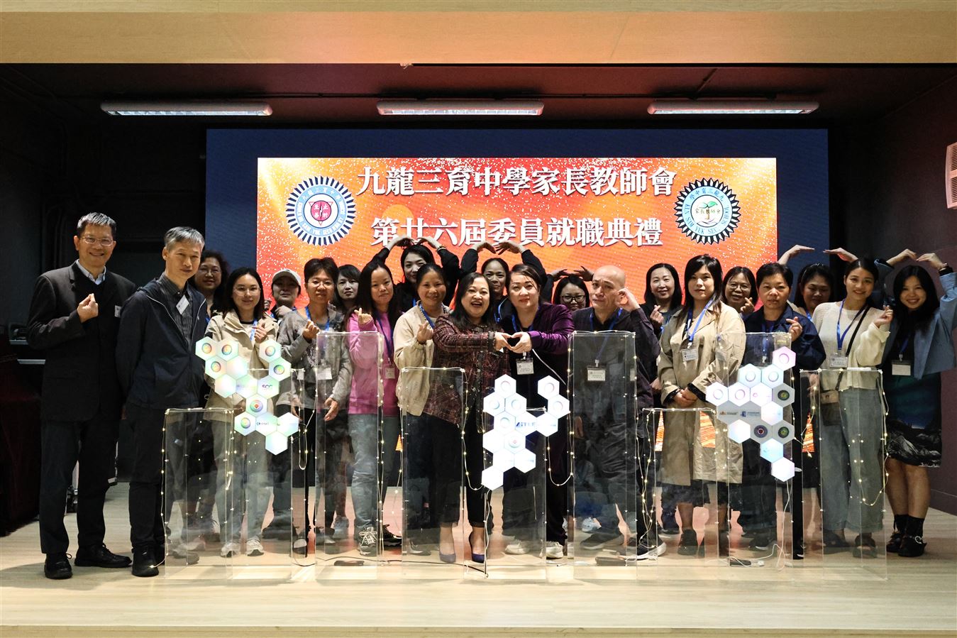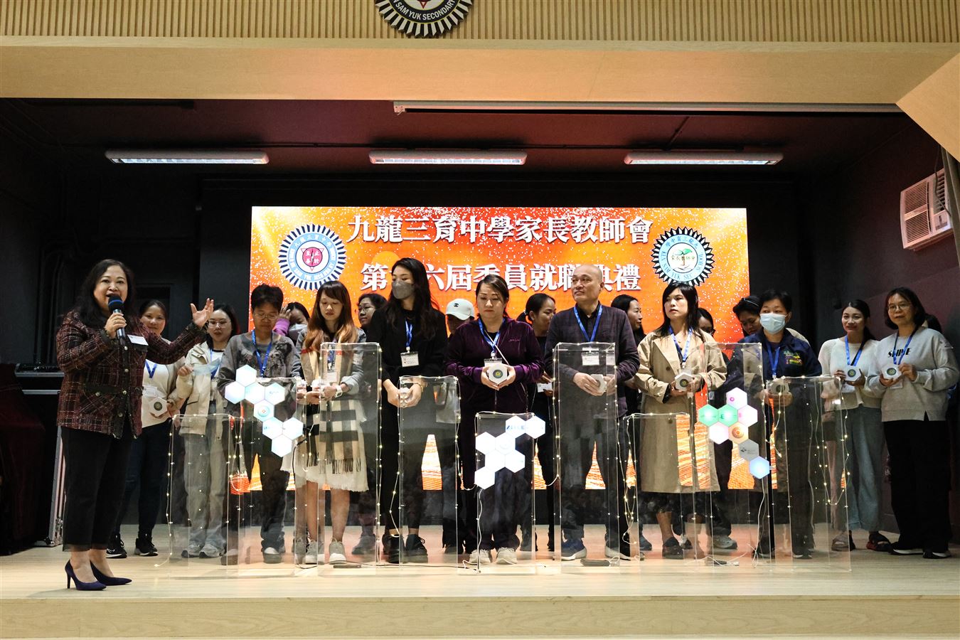 家長教師會於本年11月21日(星期四)舉行第二十六屆家長委員就職典禮。席間,校長致送禮物予剛卸任之家長委員,感謝他們對學校及家教會的付出與支持。繼而由林家偉副校長宣讀第二十六屆家長委員名單,隨即進行簡單而隆重的就職儀式。在校長的帶領下,眾委員將十多枚六角型閃燈加到印滿學校協作伙伴標誌的閃動燈柱裝置中,即時閃耀繽紛而躍動的圖案,喻意為學校注入更多動力。在家長的支持下,進一步發揮家校合作的精神。