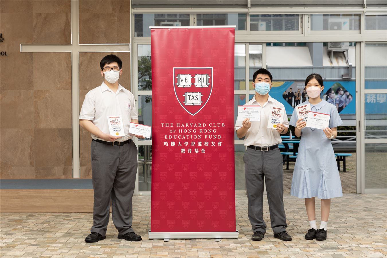 5A周政泓、5B林亦軒、林美欣同學,學業成績及服務表現優異,在學校推薦下,獲得哈佛大學香港校友會教育基金頒發「哈佛圖書獎」。