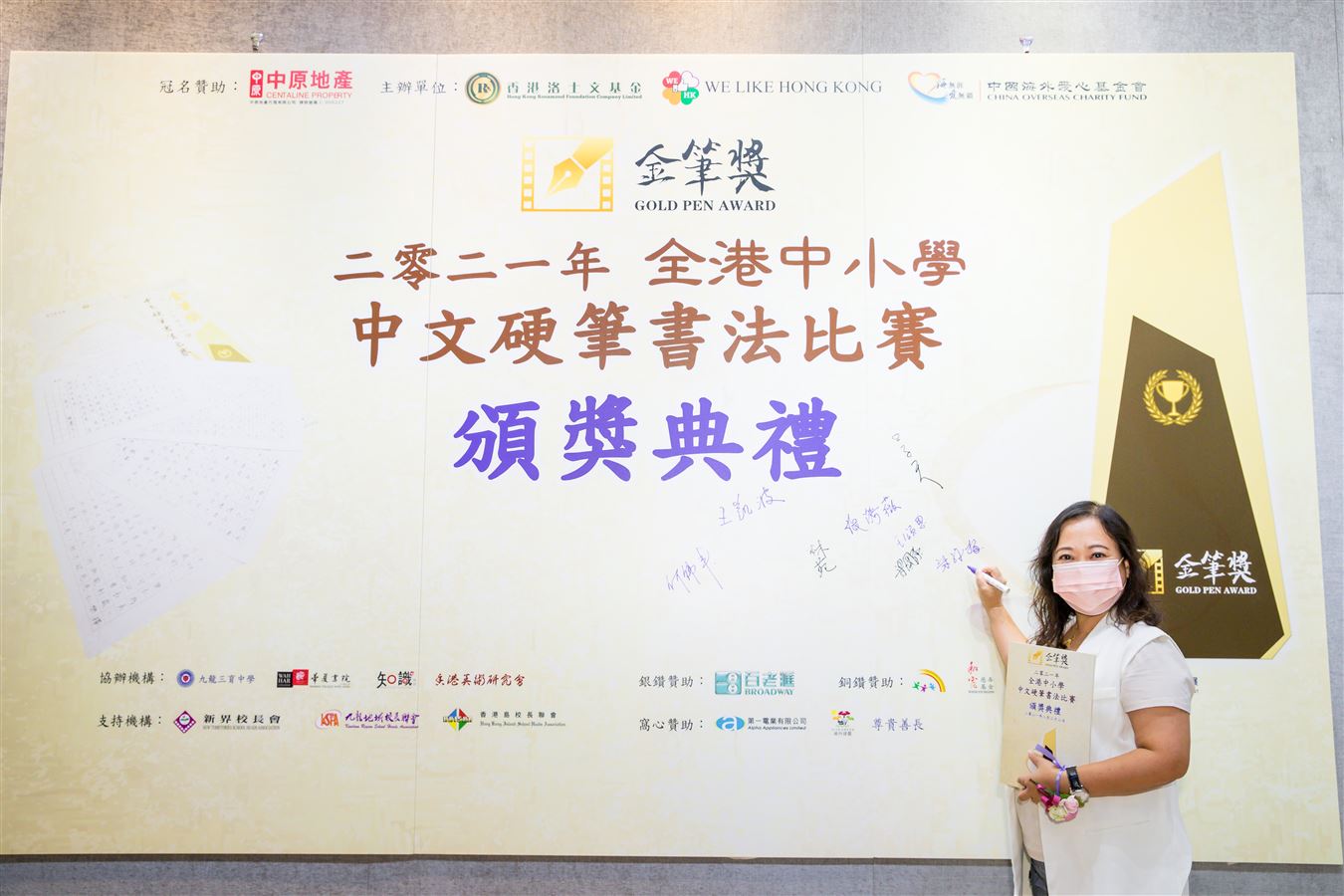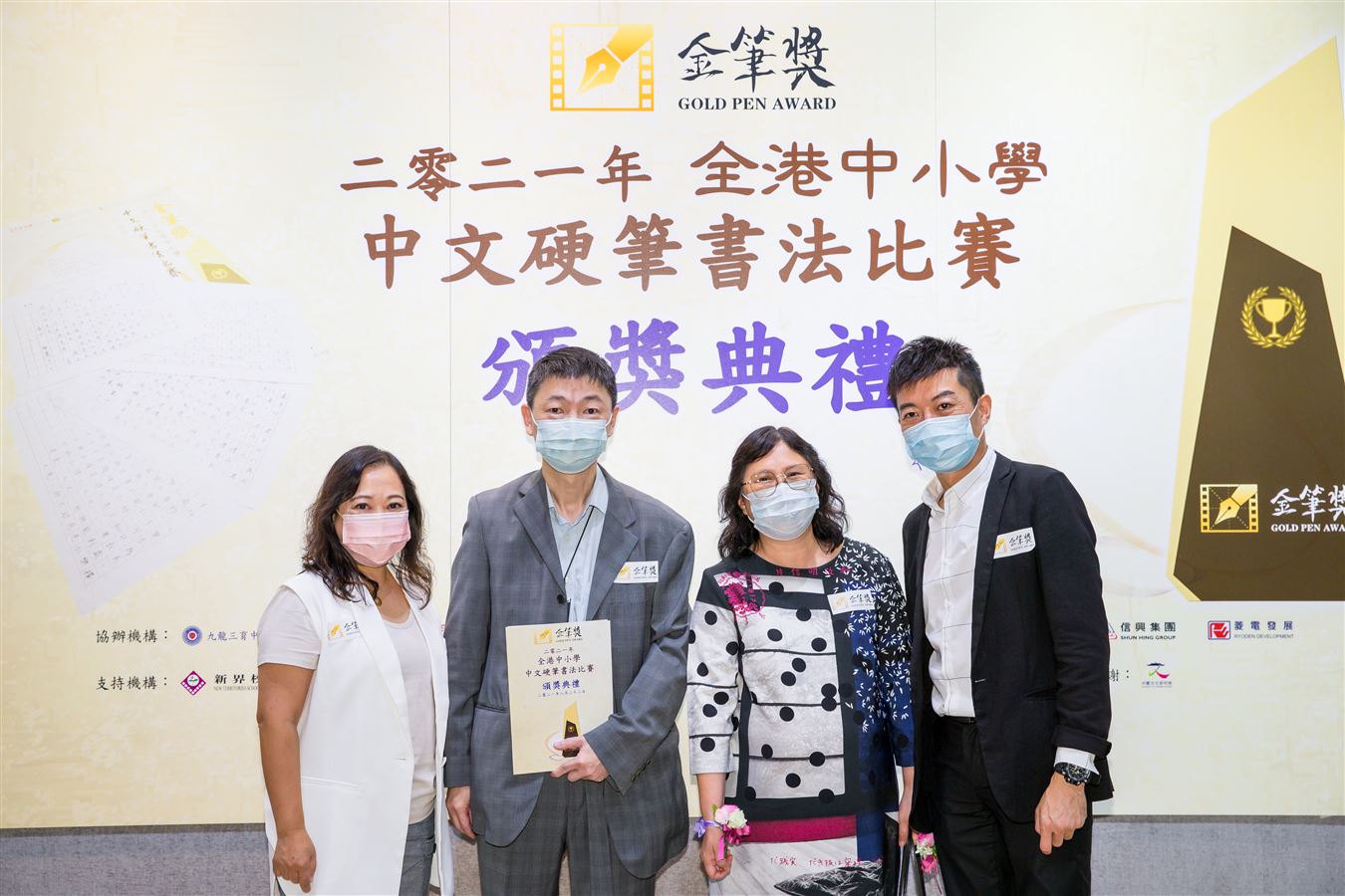 香港洛士文基金、WE LIKE HONG KONG、中國海外愛心基金會聯合主辦的《金筆獎》2021年全港中小學中文硬筆書法比賽」在疫情下順利舉行,吸引逾200間中小學參與,接獲近18,000份參賽作品。九龍三育中學比賽協辦機構及秘書處,更獲得“積極參與學校獎”。頒獎禮於2021年8月22日舉行,主禮嘉賓包括中聯辦王凱波主任及教育局施俊輝先生、香港洛士文基金會會長胡曉明博士及中國海外集團有限公司董事長顏建國先生。而本校王校長則擔任頒獎嘉賓,高中同學也積極支持,擔任大會司儀及典禮服務生。