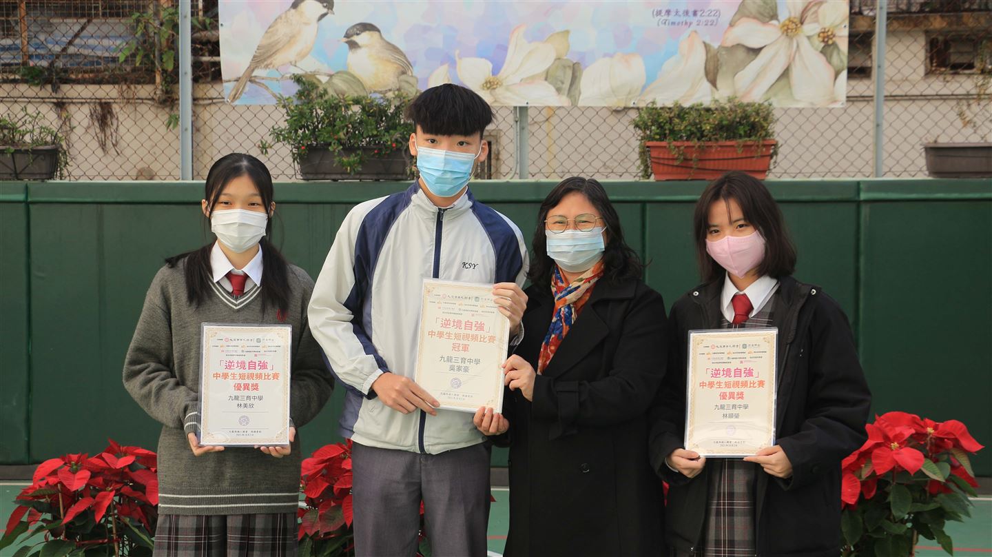 九龍西潮人聯會「逆境自強」中學生短視頻比賽同學獲獎 冠軍 : 6C 吳嘉豪 優異獎 : 5B 林美欣 、6C 林順莹